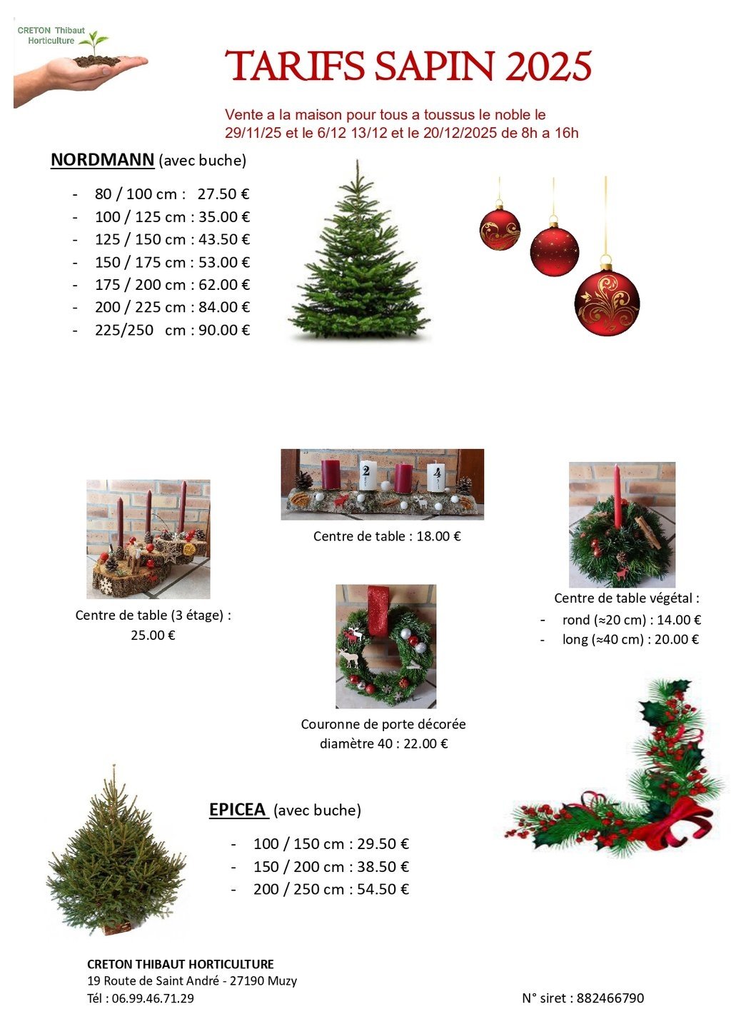 "CRETON Thibault Horticulture" pour sa vente de sapins sera présent à la Maison Pour Tous les :
