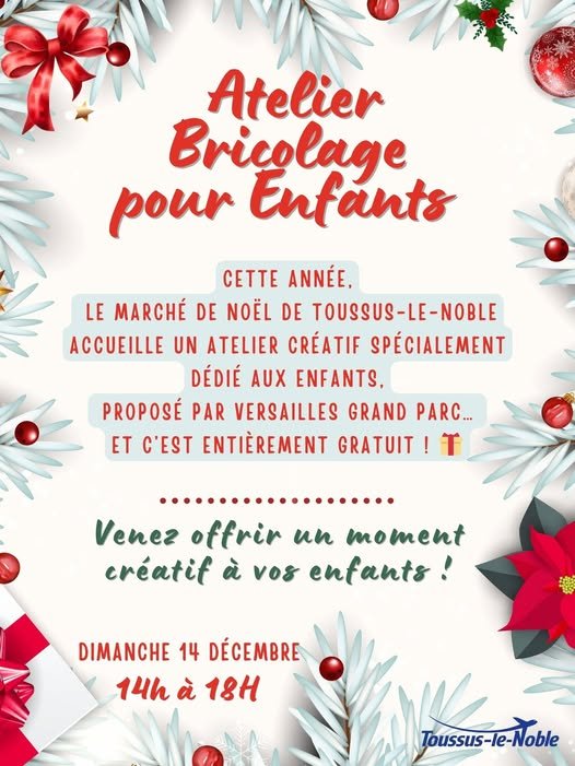 🎅🎄Cette année, le Marché de Noël de Toussus-le-Noble accueille un atelier créatif spécialement dédié aux enfants, proposé par l'agglo… et c’est entièrement gratuit !