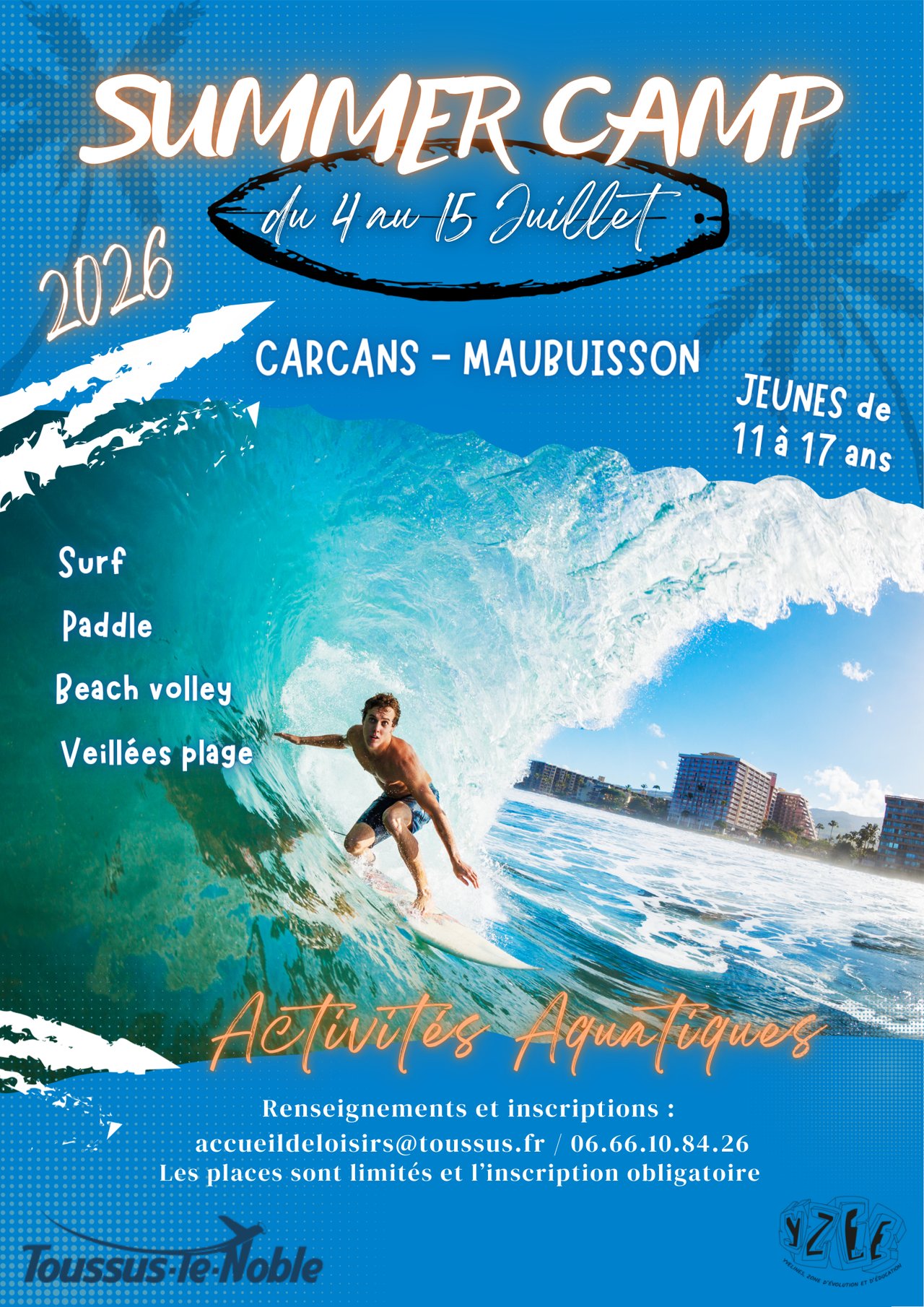 🏄 SUMMER CAMP 2026 – INSCRIPTIONS OUVERTES ASSOCIATION YZEE · CENTRE DE LOISIRS DE TOUSSUS-LE-NOBLE