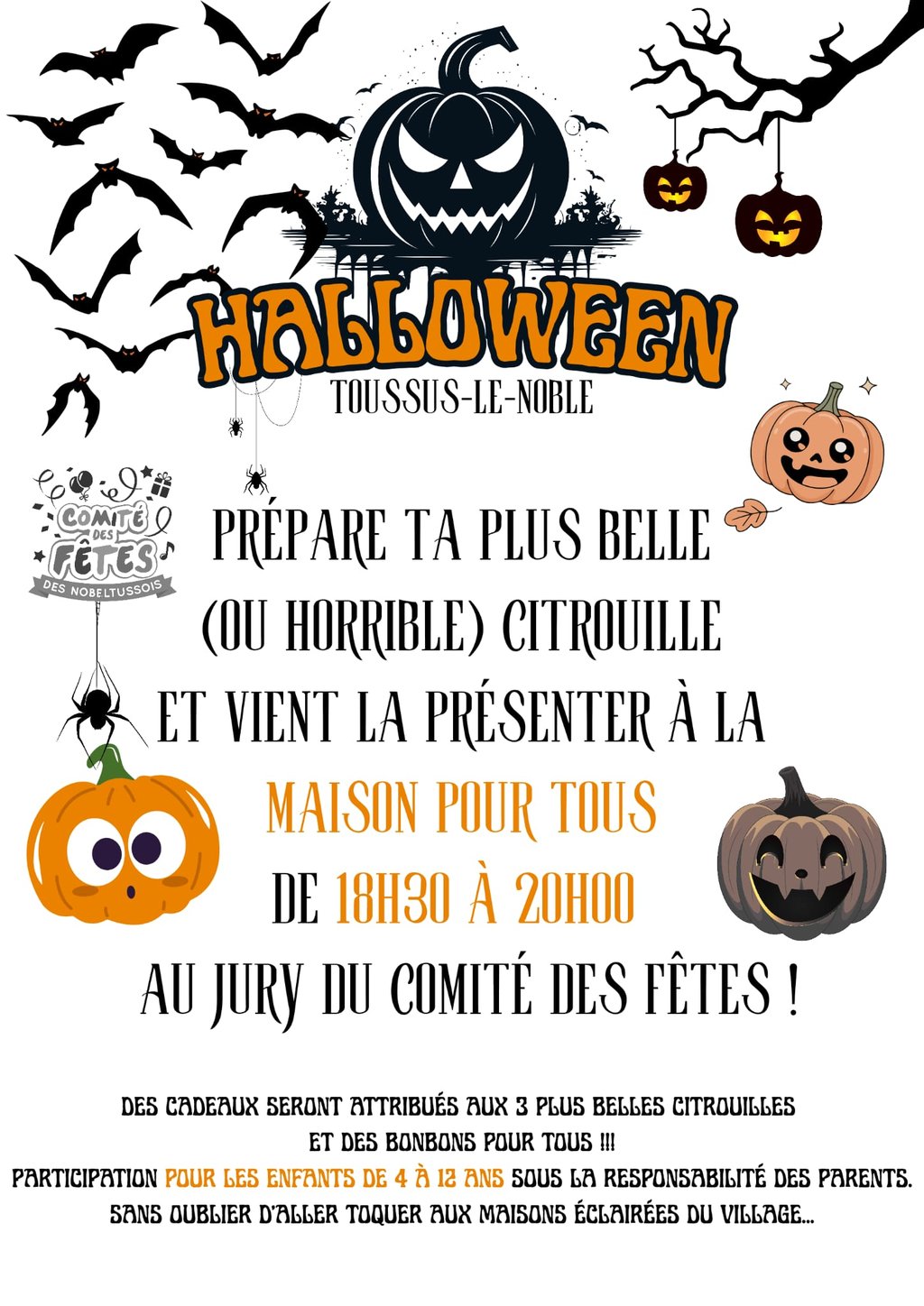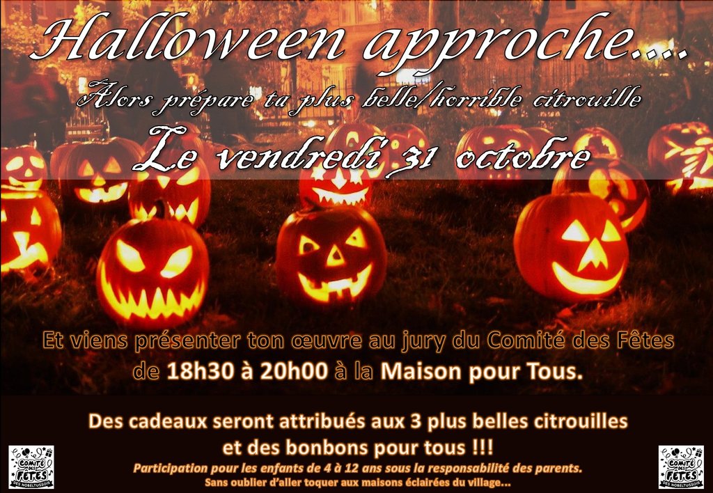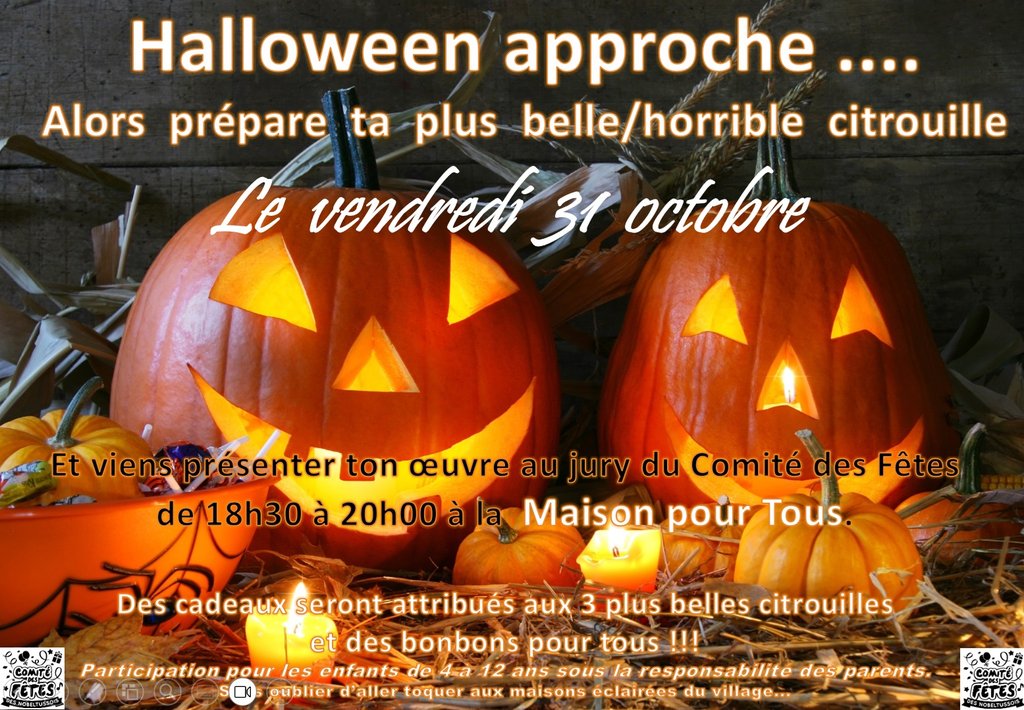 Des cadeaux seront attribués aux 3 plus belles citrouilles et des bonbons pour tous !!!