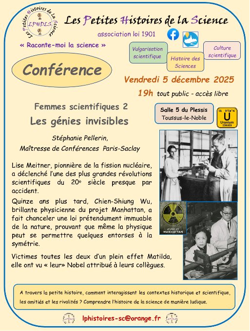 Bonjour à tous, l'association Les Petites Histoires de la Science vous propose la conférence :