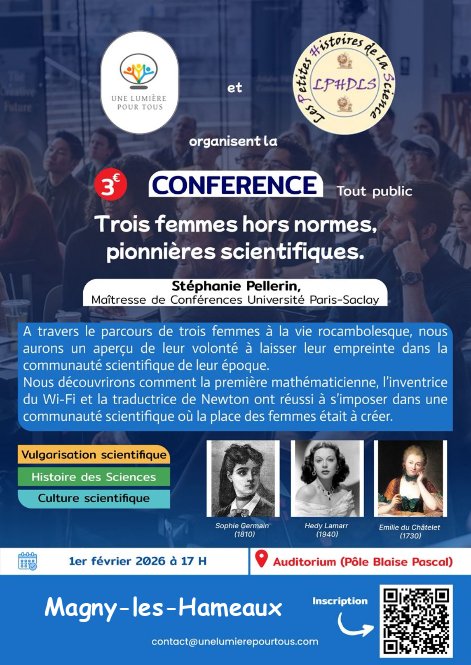 L’association Les Petites Histoires de la Science, en partenariat avec l'association Une lumière pour Tous, vous propose la conférence :