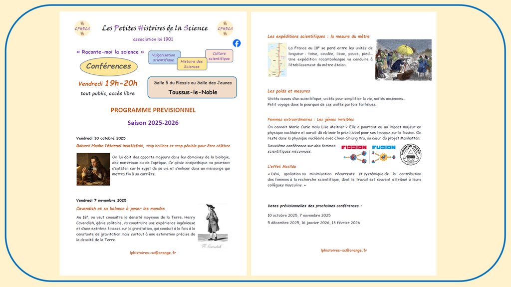 L’association Les Petites Histoires de la Science (LPHS) a pour objectif la diffusion scientifique pour le grand public et l’accès à la science par une approche ludique, expérimentale et historique.